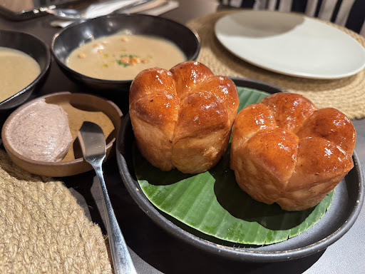 đ The wild mushroom soup was most unique and delicious. The emphasis here is on the usage of wild mushrooms and the âKulimâ fruit, a garlicky herb giving the mushroom soup a whole new angle. It was lovely.
