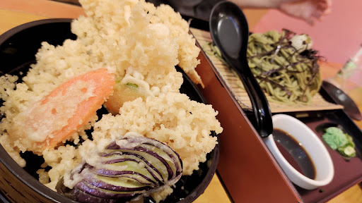I was pleasantly surprised that the tempura bento I ordered looked better and seemingly a bigger portion than the menu photo. Part of the reason is that the tempura pieces had more batter on them. Unfortunately, instead of the light and fluffy batter that coats a good tempura, the batter here was rather hard and crunchy instead. Probably too much flour and not chilled enough before deep frying.