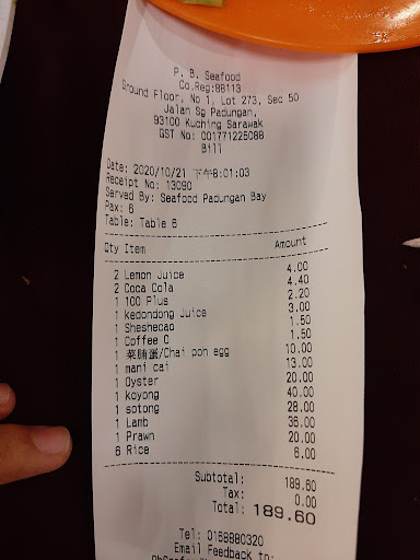 In conclusion, if you're in the mood for home-cooked-style seafood in a casual setting, Seafood Padungan Bay is an excellent choice. I would rate this place a solid 5 out of 5 based on the overall experience.