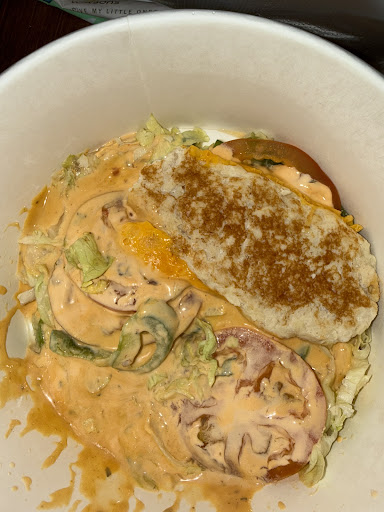 The staff seemed unprofessional and did not handle my order properly. They heated the roasted chicken first, then placed a cheese slice on top and heated it again — and they didn’t even bother to cut it. The salad didn’t look fresh or properly made like usual.