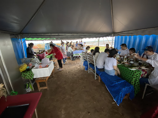 When asked about the plan b, they ask us to pray for sunny day instead. When it actually rain, almost 40 of us were cramped into 2 tent that was supposed to be their storage and preparation tent as you can see in the photo, where you eat the food in a wet muddy tents along side with their fridge, storage boxes and whatever not