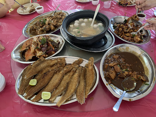 1st time visiting but the overall experience isn't great. It's a shaded open space dining area, we have no issue with that. The problem part started from food ordering. When we asked if menu is available, the girl who attended to us say no hardcopy of menu, everything is via QR code. Fine. She didn't provide QR code at the table, but the QR code were sticked at 4 corners. As we were at the middle table behind, so we walked to one corner to scan. Fine. When we thought this should direct us to a decent online menu, oops, no, it directed us to their FB page with a browsing section. The photos in that section were quite limited, so we ended up having no clue what to order for a 'seafood restaurant'. We asked the girl again for recommendation. Yes, food selection is quite limited. We ended up ordering fishball soup, steam fish, a stir fry vege & salad mantis prawn for 4 of us. The food is pretty average, nothing commendable though. The price is cheap, RM102 inclusive of 4 rice and tea.