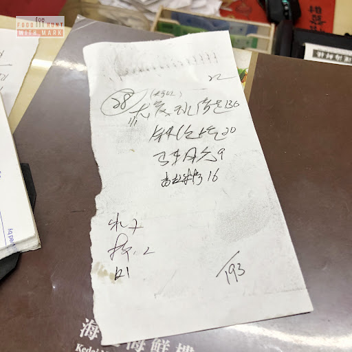 The days pick for me from next door at Choon Keat fishery garoupa at 2.5 kilos / RM40 perkilo and prawns at RM80 per kilo. I also added kangkung belacan and Fried Tang Hoon . The total comes out to about RM80 at Hai Ung for the two plates and as well as Salted Egg prawns and Sweet Sour Fish . Pretty good value at RM250 , naturally we couldn't finish it all and have to take away :) . I reckon this could easily satisfy 5 hungry adult .