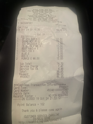 Read moreFast and good japanese food here in banting, bit pricey for the portion given. Sushi King Banting is a haven for sushi enthusiasts. The sushi offerings are fresh, flavorful, and beautifully presented. The menu features an extensive selection of sushi rolls, sashimi, and other Japanese delights. The attentive and friendly staff create a welcoming atmosphere. Whether you're a sushi aficionado or new to Japanese cuisine, Sushi King Banting delivers a delightful dining experience that will leave you...