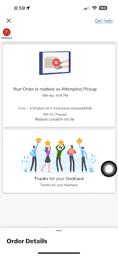 Read moreI had some hiccups with my orders via Grab (ordered twice but the app kept on showing 'couldn't find a driver' message) although it was not a peak hour. One of the staff go beyond his job scope to personally message me regarding my order status and professionally advise me on the other alternative option to resolve this. Kudos to Hanif Hanafi for helping me patiently. I truly appreciate his effort. Not only he helped me to resolve my order issue, he has also helped to put a big smiles on 12 kids today ! ( i ordered 12 happy meals for my son and his friends for his birthday). Thank you Hanif for your awesome service! Keep it up with the...