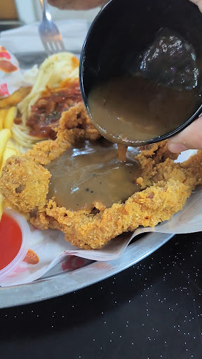 Tried the new menu 2025, the Nasi Goreng Chicken Chop, what I like about the NG is the rice is still hot, inside the NG also got chicken meat (which most NG only serve plain tasteless NG with some 3 colour veggie/beans) but this NG was more genuine as NG, the chicken chop was drumstick part (whole leg I believed), the breaded crispness was ok (some part is a bit hard), however the chicken meat inside was less flavorful because no marinated beforehand I believe, but this can be compensated with the black pepper sauce, BPS can further improved by adding some butter, maybe goreng some garlic and butter prior to cook the BPS, to enhance it's flavor. The spiciness of the BPS was ok, not too peppery spicy. NGCC (7/10), chicken coated can be less hardened, and meat can be more juicier as well. But definitely really value for the money, RM 10 for such portion it's a great bargain.
