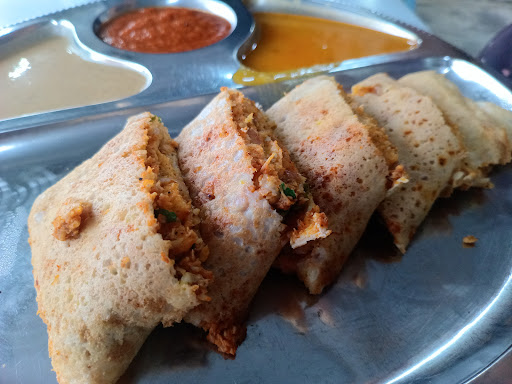 Chicken Thosai Let's start with the chicken thosai. This dish is a delightful marriage of crispy, golden-brown thosai and tender, flavorful chicken. The thosai itself is expertly made, achieving that perfect balance of crunch on the outside while remaining soft and pliable on the inside. The seasoned chicken is well-marinated, bursting with spices that elevate the dish to a whole new level. Served with a side of fresh red chutney and fragrant coconut chutney, each bite is a harmonious blend of flavors and textures. It’s a must-try for anyone visiting.