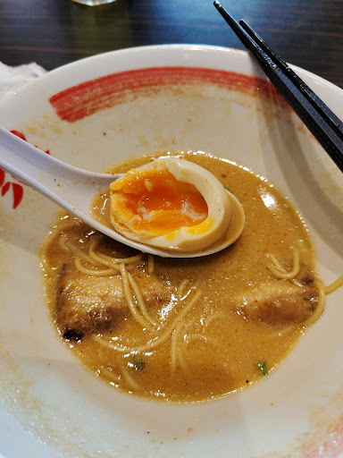 Very good tonkotsu ramen, one of my favorites. This is a must visit spot for me whenever I come to Mitsui. Not cheap but good. The ramen noodles like the original Japanese noodles, you can select the hardness of the noodles at your preference. The broth is thick but not too thick and salty like others, it is well fit. As the Char Sius was grilled before serving, the aroma is really good and it goes into the thick broth which is really good. Thick Char Siu was tender and soft, very well prepared. The hanjuku tamago was very nice. The egg york is still in lava state. On one occasion, the owner just came and met with the manager. This is operated by the Japanese, no wonder the quality is well maintained. This is the Japanese ramen restaurant that is worth revisiting whenever you come to MOP. The price is slightly higher, starting from RM28 to 38. But it is worth the good quality...