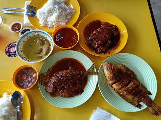 Read moreThis is a no-brainer set for lunch/dinner. The restaurant only sells Bawal or Pomfret set. You don't even need to think or look at the menu because it is the only dish selling here. An added side dish are the roasted squid in different sizes. We were there for a late lunch and the place was almost empty. The cafe is big with lots of seating places. I was told that the place is totally packed during lunch and most of the sets are already pre-prepared and ready to be served. So we did not want to get into the crowd and wanted a quiet lunch. The fried pomfret was fresh and sweet. The size is really big and served with rice and some salad. There are three types of dippings for the pomfret : sambal kicap, sambal belacan and sambal asam. Sambal asam is the best with the tangy and citric taste with a stinging hot taste of chilli. I love it as it brings out the best taste of the pomfret. The set is priced at RM12.00 and is totally worth it. Parking is available near the entrance...
