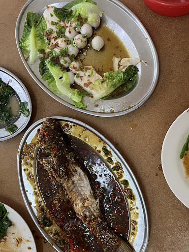 Reached here around 12pm on Friday. No crowds, so plenty of tables but we seated in the air conditioning room where only 2 tables available. Ordered the regular popular dishes - fried fish with spicy source, fish balls, steamed freshwater prawns and fried kangkung for 4 of us. Dishes were served without much waiting time. The dishes are still generally good. Just the fish source is not as spicy as before. Losing the 'kick' of spiciness.