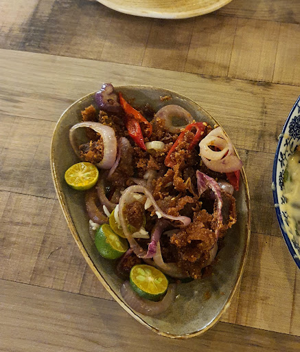 Read moreI had a high expectation for this restaurant (based on google review) especially when it comes to taste and quality of the seafood/meat (aneka lauk section). My husband and I had rice to pair with daging salai and sambal petai udang laut. Daging salai was ok, nothing to shout about, gravy slightly on the watery side. Taste of sambal petai is good, more on the spicy side but unfortunately udang laut was very bad in terms of texture and quality (size udang laut is ok for the price paid). But quality/texture; it’s not fresh at all (lembik almost to the extent bila bukak kulit easily terlerai isi). I did mentioned about this to one of the waitress so hopefully they’ll improve in the future. teh o ice limau just nice, not to sweet. Restaurant ambience is wonderful, chill, and cosy. There’s toilet inside their premise. My husband did caught one of the guy worker wearing cap smoking inside the toilet and straight away after done with his business, going to the kitchen. Not sure if they allow smoking inside toilet but it was way too unhygienic especially if you work for the restaurants and serve/cook for clients...