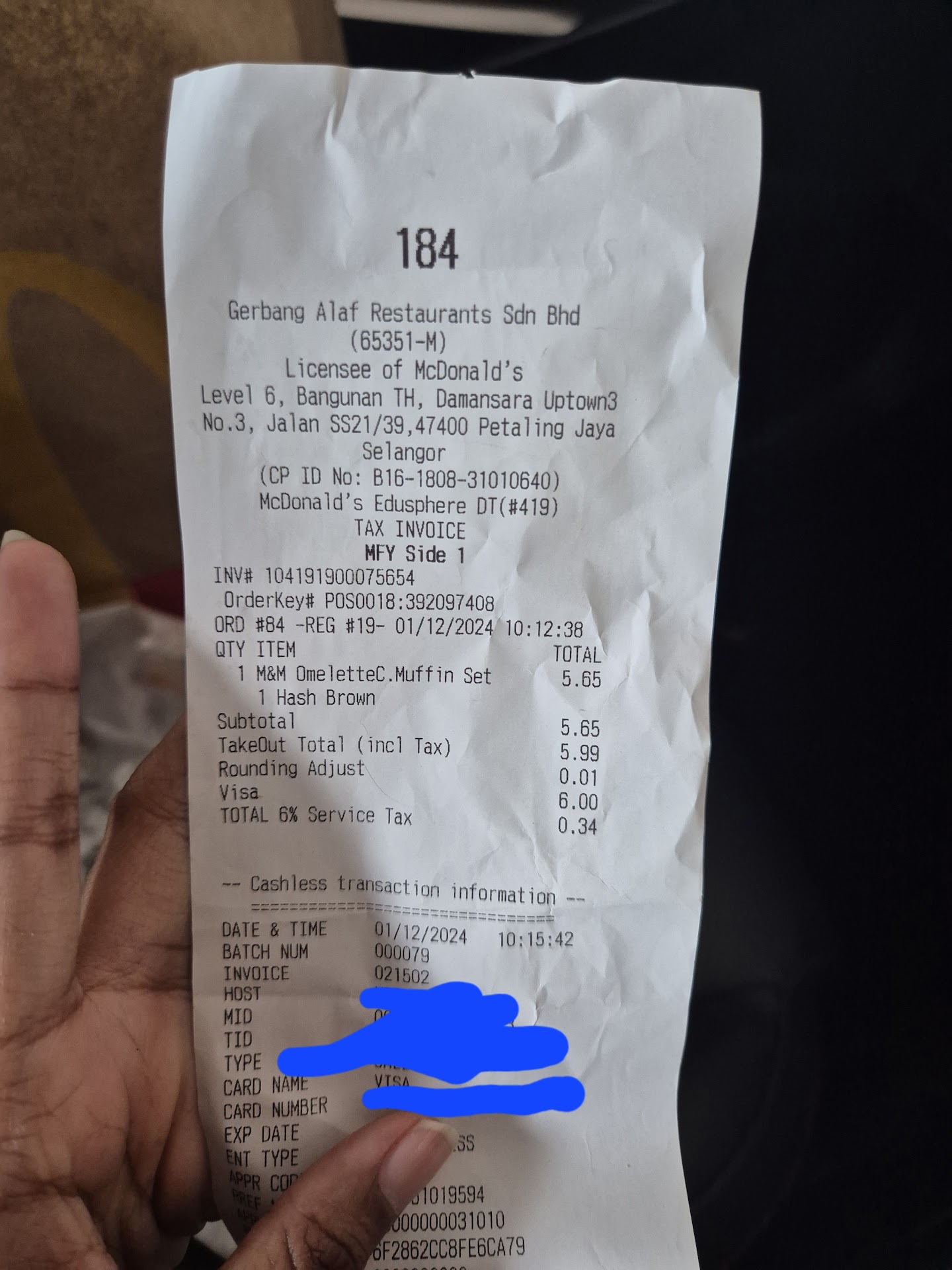 I ordered a Sausage Cheese Omelette Muffin with Hash Brown. I was informed that the hash browns were unavailable and would be replaced with fries, which I agreed to. However, when it was my turn to collect the food, I was told the order was not ready and asked to wait further ahead.