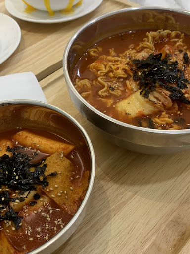 To top it off, a table near us was left messy and not cleared for nearly an hour. It looks like they were understaffed. My tteokbokki was too watery and mushroom burger tasted burnt. Overall, a disappointing dining experience.