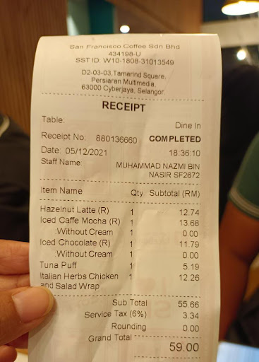 Read moreHorrible service from one of the staff-cashier Muhammad Nazmi (SF2672). Unprofessional customer service. SF Coffee Management should train your staff with good manner. Harass the customer. Is it 3 big families are not allowed to bring senior citizen(with booster vaccinated) here??? Ill-mannered & rude conversation. The line was bad here, take time to load My Sejahtera status check in & vaccinated. Very rude with my father, unacceptable. We pay to have the best food and coffee here, but spoil the mood with ill- mannered Staff Muhammad Nazmi!!! Don't discriminate people either young or elderly, coz from customer money is COMPANY REVENUE to support your salary. Well be grateful you still got a job....