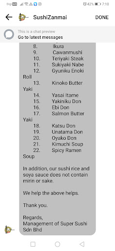 I love the sushi here. Great ambience for family and friends to eat. But need to be very careful especially to Muslim for their menu as some of the dishes contains mirin. I have asked Zanmai Management before and this is their reply on the Halal status. I hope this will helps you choosing the right menu. 😊