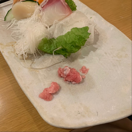 I had Amagi sashimi plate (RM65) today containing tuna belly which is the most expensive sashimi on the menu, yet the quality of the tuna belly is so bad that has so much tendons in it that is not edible or chewable that I had to spit them out as shown in the pic, let alone the size of the tuna belly sashimi is only half the size of what it’s supposed to be. I showed it to the manager and asked them to wear gloves to try to break the pieces as they are non-breakable. Either the chef didn’t know how to slice tuna belly in a correct way/direction or it’s not even the exact belly part. They asked if they can replace another slices for me, of course I declined because it’s the same tuna in their kitchen and I wouldn’t wanna chew another non-breakable tuna belly(belly or not?).