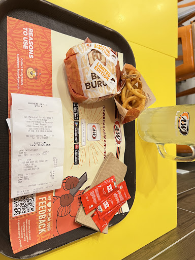 The ambiance in the A&W at Central i-City Mall was pleasant, with a clean and well-kept dining area that felt inviting. Despite the wait time, the overall atmosphere was comfortable, and it was a nice spot for a casual meal. The staff were attentive and maintained a positive attitude even during busy times, which added to the experience.