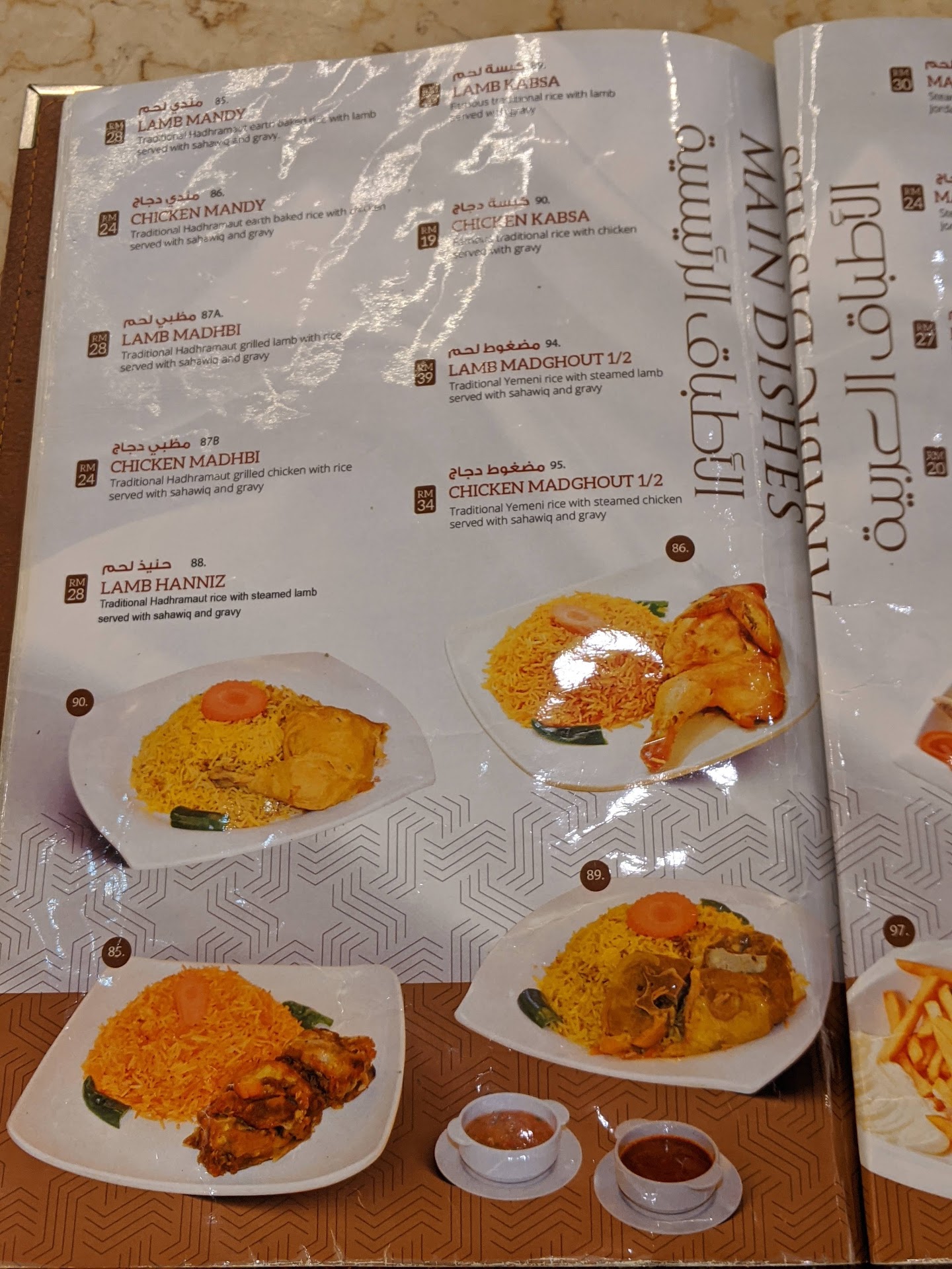 This place was recommended by one of my friend when i text him "bro, what is a nice place here in shah alam to get arabic cuisine?" 1st time getting here, and im impressed with the building. Going inside, lots of people but they also got many tables for you to seat. Ordered Lamb Mandy, Chicken Kebab and Cheese Kunafa that night. Lamb Mandy : very big portion. Looks like the portion was for 3 person. Haha. The lambs were juicy and tender. I love it! The rice a bit dry, but it comes with soup and sambal. Chicken Kebab : nice to eat. Very soft and tender, the taste was good. But i was unable to finish it due to the Mandy's portion was so huge. Cheese Kunafa : im not into kunafa usually. But this is my wife's review. The Kunafa was nice, but a bit milky, taste like a sweetener. But she love the cheese all over the Kunafa. A bit bad review: the staff was not so friendly. Need to improve on this. I asked the staff to pack my lemon juice, as i need to rush for another place. One of the staff took my juice and bring it somewhere. After 5 minutes, i still didnt get my juice back. I go to the kitchen and ask one of the staff, but the staff keep on pushing me to go to another counter by saying "air order sana" and repeat it a few times eventhough i still not finish my talking. Otherwise, the foods all good. The place was nice to bring family. Recommended 🙌
