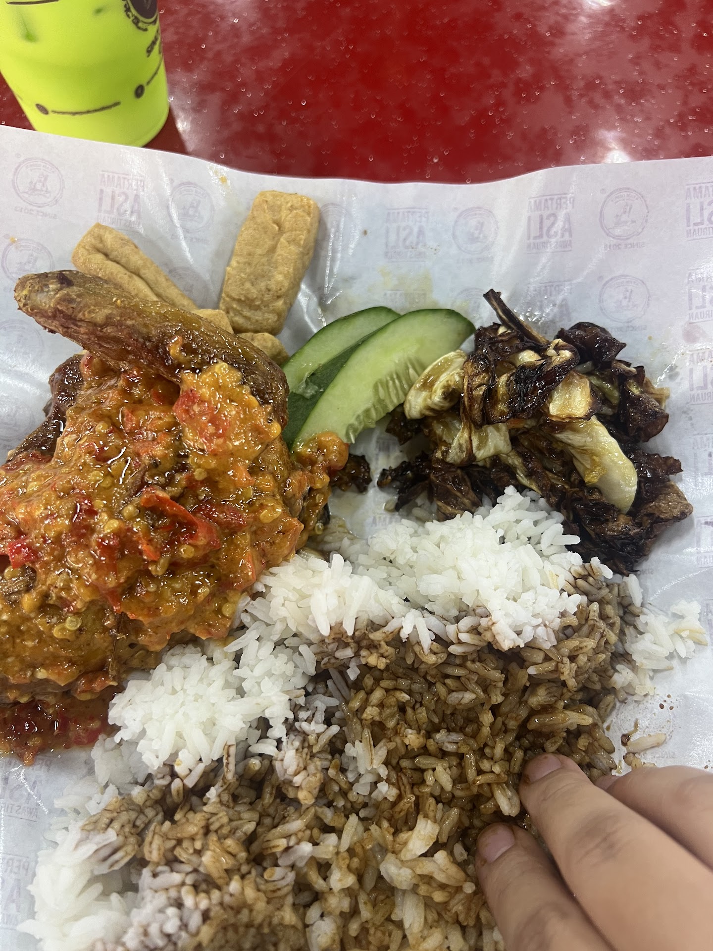 Day 1 - Date of visit was 23rd August 2023. The aunty at the cashier was super nice, she smiled and assisted us politely. The food was great, the chicken part given for "ayam crispy" is drumstick. Free flow and service for so u can refill just in case u need more. In terms of taste, it was outstanding. As for atmosphere i best i can give is 3/5.