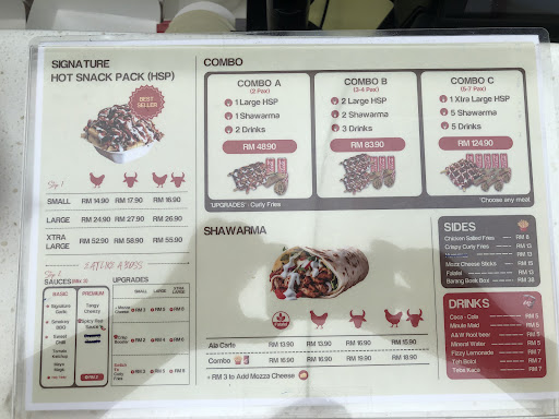 if you choose, there are combos which are a combination of Shawarmas, HSP and side dishes or drinks.