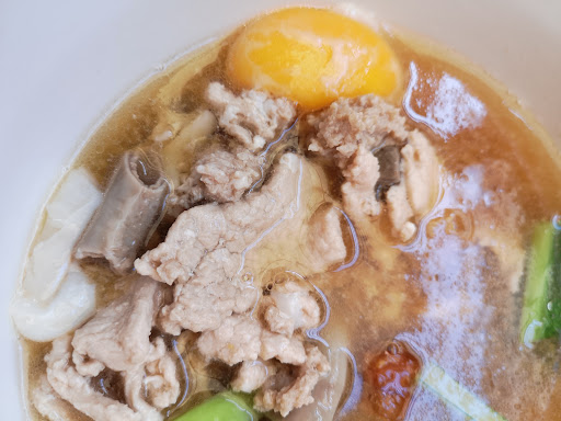 Food 5/10 (noodle + kueh teoh soup) Broth first taste was salty, then subsequently its bearable but nothing to hype for meat is good, they marinated it innards were bad, the intestine taste bitter (not cleaned), liver is tasteless (overcooked) noodle so so egg in the broth handled nicely, not overcooked with some yolk flowed out good job on that temperature of the broth cool down when the industrial fan keep blowing on my food as I was sitting at the back of the shop, at the end my broth was cold and tasted terrible. Minus for people who like hot soup.