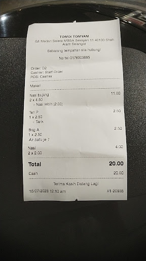 TOMOI TOMYAM 01. G1 Medan Selera MBSA Seksyen 11, 40100 Shah Alam, Selangor Darul Ehsan.