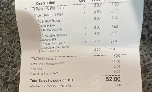 Ice cream is great for its value, as you can really taste the original ingredients instead of cheap imitations of the flavor through chemicals and such, staff is also friendly and patient when serving customers, do not hesitate to ask for taste tests as the staff are willing to give a generous amount of the samples to you. In terms of hygiene once the customers left they will clean up the seats even if it is not stained or dirty, which proves how much they care for the comfortability of the customers dining experience. Overall it has been nothing but wonderful to have a...