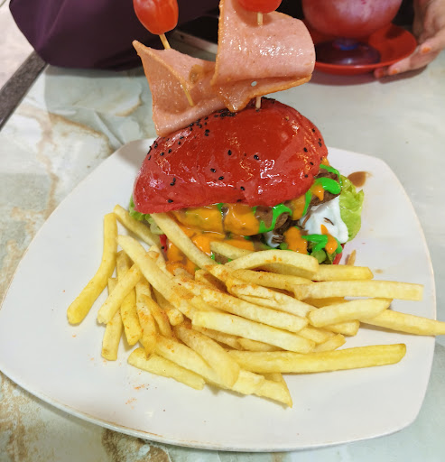 So this was my first time here, and let’s just say the adventure started even before the food. The parking space was so limited I felt like I was competing in Fast & Furious: Parking Wars. By the time I squeezed in, I already deserved a free dessert. Just kidding. The menu came in the form of a gigantic plastic board—I kid you not, it looked like something you’d use in playschool. Trying to balance it while flipping through was like wrestling with a stubborn door. I almost asked for a crane to help hold it up. We ordered quite a spread: charcoal burger, nachos cheese, chicken chop rice, cheese fries, and chicken cheese. If you sense a pattern already… you’re right. The chef here must really love dairy, because it felt like I was attending a secret cult meeting of The Brotherhood of Cheese.