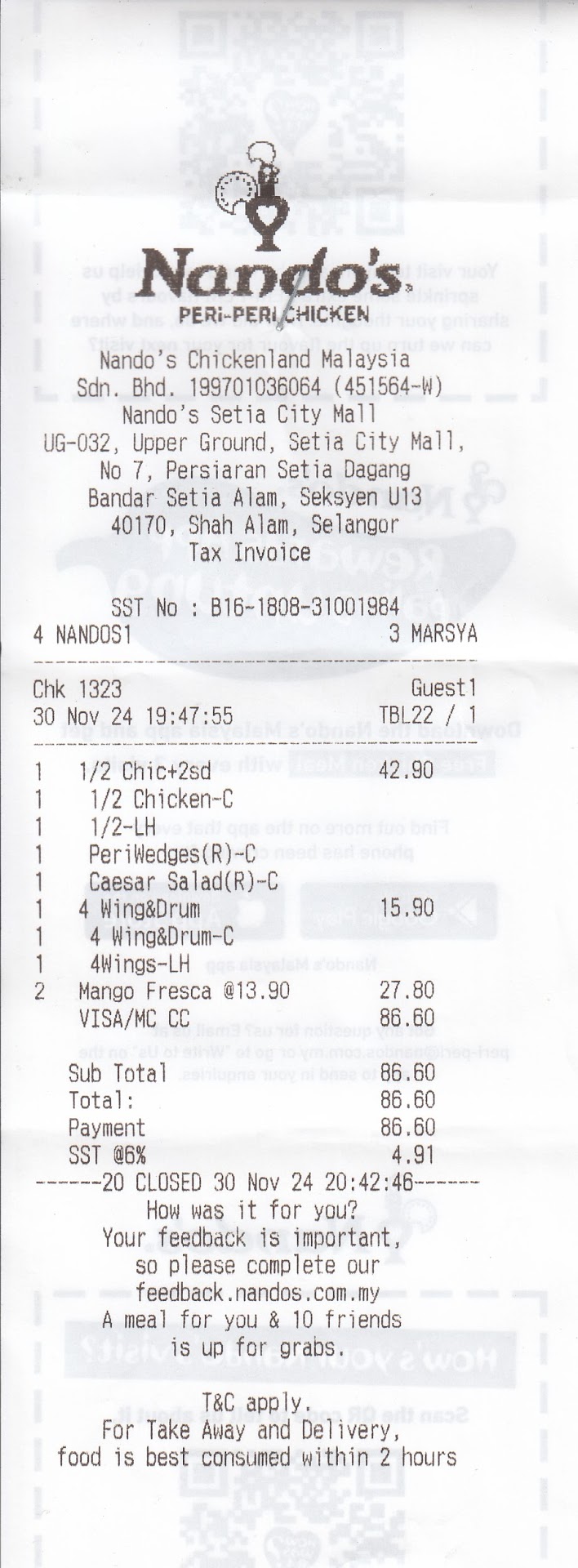 We did contact the corporate HQ of Nandos and they suggested that we try Nandos Eco Grandeur instead of Setia Alam City mall and what a difference between the two restaurants!