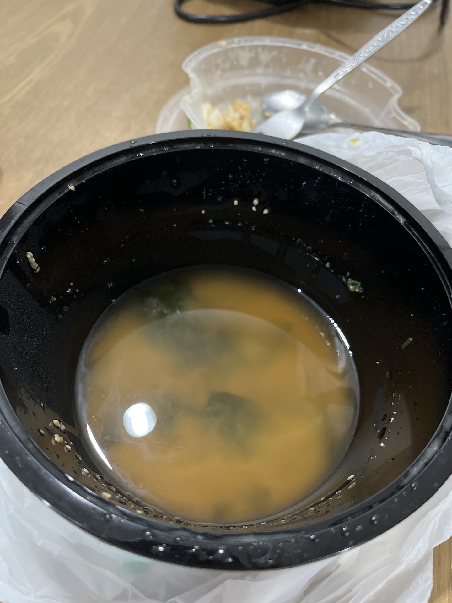 I also took away a Chicken Katsu Curry rice which also had a miso soup included. My daughter commented that the chicken and the miso soup was good, but the curry lacked flavour and was bland.