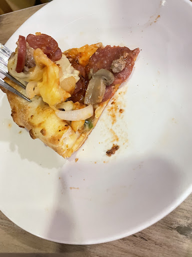 Read moreI came at 8-9:00+ pm and upon entry nobody greet us,only bells ringing. Sat at table but nobody assist. At 5 min we start looking around to find a staff. Zero staff at dining area.Then we looking around figure out ourself that the other section had small clip board with qr code. Then we like ‘oh’ .. start annoyed. Without being assisted,we sat at randomly table. Friend go to toilet and he said, terrible odour and very dirty !!oh my !! After scanning and ordered, all was great until pizza super supreme came. Why stuff crust folding not neat ? And where is our olives on our pizza ??? Ask staff but she ignored us ( female tudung staff ) And soup only came after 2 slices pizza’s left? No say sorry for delay ?. (male staff) Until we finished meal n paid, nobody come to us for apology. I am really upset. Luckily cashier name ‘ALYA’ ask for apology at cashier counter during payment after i told her the situation.Its not her fault i know because i need an explanation from the manager / kitchen person who make my pizza/soup.Not that cashier. I am very frustrated and even only 2 table on that time, they failed to deliver the basic of hospitality and quality...