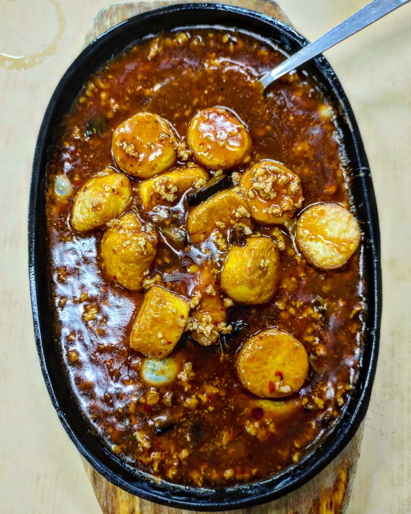 Sizzling Japanese Tofu (𝐑𝐌𝟏𝟓.𝟎𝟎) super delicious with strong wine taste. Minced pork, Japanese toufu, mushrooms and eggs on the sizzling pan. Big portion, super thick sauce and filling. However, it was not piping hot. Sizzling pan was probably heated under low flame. Within seconds, sizzles stopped.