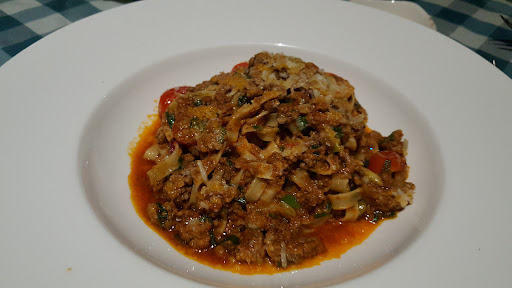 Ordered the bone marrow risotto but no bone marrow to be seen Lamb croquette was ok Pasta with beef was sooooo salty Service could be better - the waiter keep wanting to collect our plates even where there's still food on it and our cutleries were arranged in an 'X' which shows that were not done but he's prob not trained to know that
