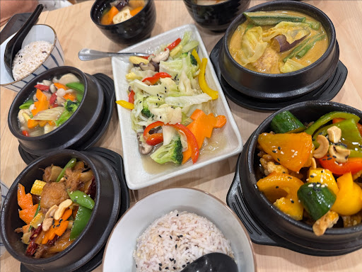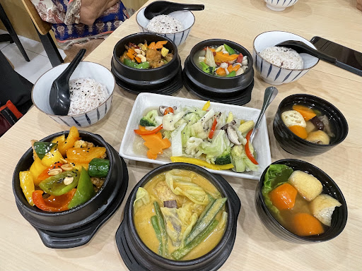 Read moreOrdered the set that comes with 2 dish, 2 rice, 2 soup and 1 veggie for RM40. The sweet sour mushroom was good but the sauce was a subtle not that much sweet sour taste. The soy knot soup was good but a tad salty, I really liked the ginger in the soup. The ginger flavour really added a nice balance. The fried veggie was fantastic. Full of wok hey and tasted really great. Also ordered the sweet potato spring rolls. I really enjoyed this especially when eaten hot. The service was great but the food did take a while to arrive....