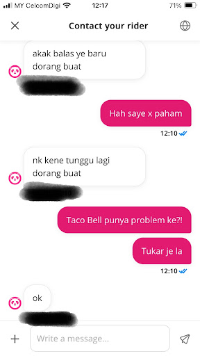 Read moreWhat is the problem with Taco Bell franchises??? Ordered through foodpanda from this location and received message from the rider to ask to cancel my order. Cause apparently the restaurant didn’t turn on their device or some 💩. How is that my freaking problem? And then another messaged from the rider telling me that they’re out of beef for my nachos so can I change it to chicken? And if I don’t reply they can’t do my order. I’m freaking working at the moment and I was lucky enough to be checking my phone!! Since when is it the riders job to do this?! Check your food list availability on delivery apps next time!! I won’t order if it’s not available or if you’re not open...