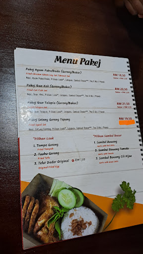 I lived in Indonesia for some time and enjoyed the local Indonesian delicacies. However, the sambal in Malaysia isn't the same as in Indonesia, maybe because Malaysia doesn't have "cabe rawet." The taste was good overall, but the sambal terong was a little too spicy for me. Thankfully, they had kecap manis and cucumbers nearby. All the staff were welcoming and friendly.