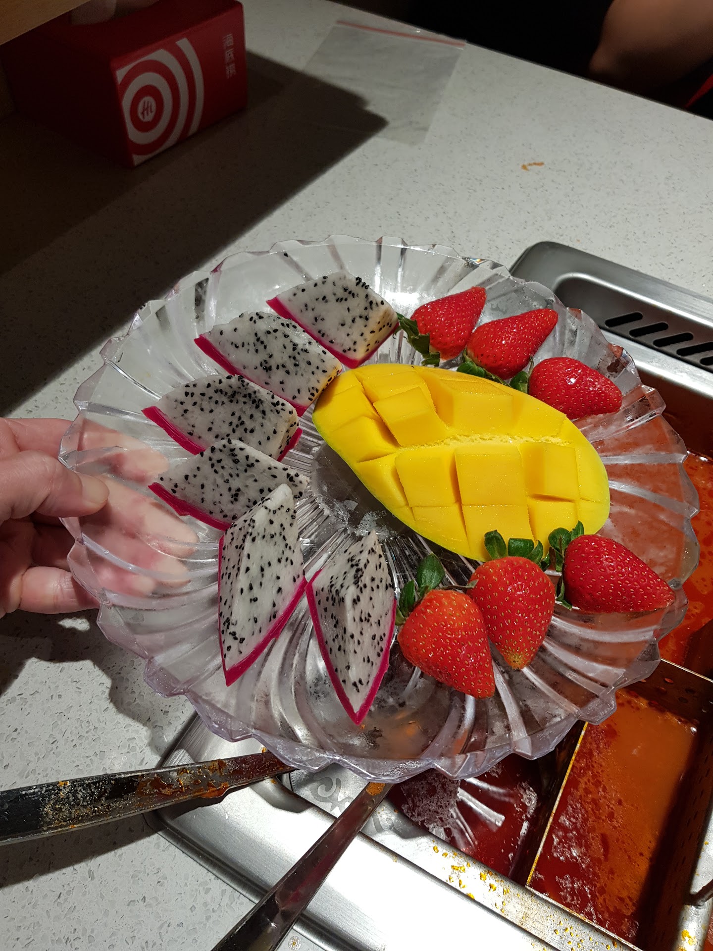 Read moreFirst time trying Haidilou and was amazed by the hospitality that was given to me by the HDL staff. From the moment I say down waiting for my turn to dine in, was immediately greeted by a friendly staff offering choices of drinks and snacks and ice cream. The dining experience was on par with the excellent customer service at the front entrance. There was a designated person in our area that attended to our every need. From menu suggestion to helping us take sauces for different food item and constantly checking up on us if all our ordered item have arrive, beverage refills and cleaning the table of tissues and empty plates. The choices of sauce is also really impressive as there were so many ingredients and constantly being restocked to ensure everything was ready for the customer to just self serve.