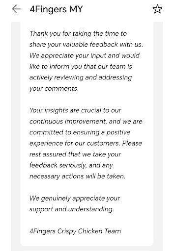 Amazing Flavors and Crispy Goodness! 4 Fingers has quickly become my go-to spot for fast food! Their signature crispy chicken is perfectly seasoned and cooked to golden perfection, with just the right amount of crunch in every bite. I particularly love their soy garlic and spicy saucesâflavor-packed and absolutely addictive.