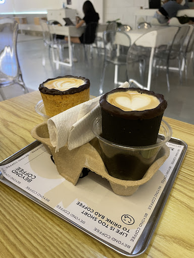 Ordered the charcoal flavoured cookie cup with latte, matcha latte, cappuccino and hazelnut coffee. The cookie cup, loaded with sweetness as inside of it was fully coated with chocolate, too sweet in fact, the latte in it tasted quite bitter, but when it crumbled tried it with the coffee it was a good combo. Otherwise on it’s own, only the cookie cup was enjoyable, but yes too sweet. Maybe could work on that. The matcha latte was good, like really good. With the balance taste of bitter and sweet, ordered it less sweet.