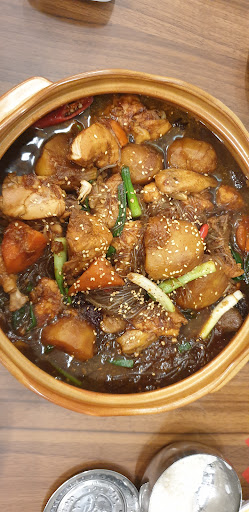 Their jjim dak (soy sauce braised chicken) is a huge portion (could serve 3-4 pax) per serving. Flavor is very deep and rich too. Very suitable to eat with rice and kimchi. You'd find an abundance of glass noodles, potatoes, and carrots as their accompaniment.