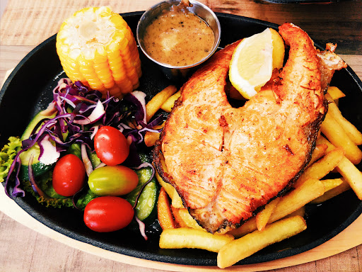 The food here is fine, my father ordered their salmon steak and I tried their carbonara spaghetti with salmon. Both were okay,the salmon could use a bit more seasoning to make it more flavourful. The carbonara sauce could be better imo. Overall,I would return back here to try...