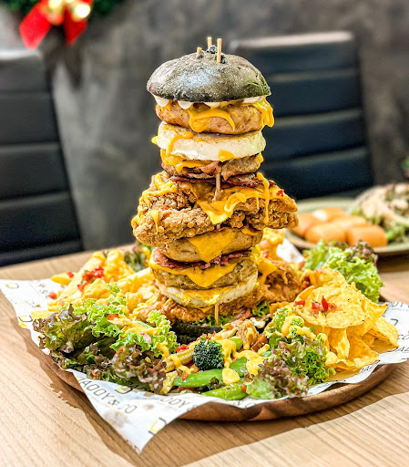 𝑻𝒐𝒘𝒆𝒓 𝑩𝒖𝒓𝒈𝒆𝒓 𝑷𝒍𝒂𝒕𝒕𝒆𝒓 RM78.20 Limited edition tower burger platter 🔥I literally came for this. 🤩Definitely the highlight of the day 😙 Tallest burger i have ever seen so far ! 🥹. Love the presentation, love the taste 😍. 2x chicken patty ,2x Juicy Pork Patty ,2x Crispy Chicken patty with bacon ,Turkey Ham ,Cheese ,Eggs, Nachos,Fries, Sautéd vege & sala. Super full after swallowed half of it . The portion is super huge & suitable to for 3-4 pax . It’s Only available till 28th Jan . Come and try it out this new menu