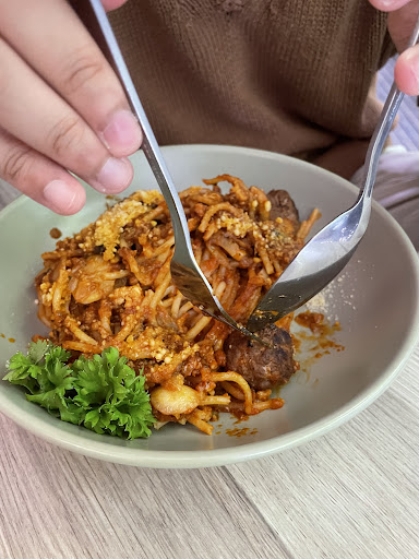 meatball was bland. Spaghetti was okay. Nasi Lemak isnât âlemakâ enough and the rest was bland. Ice choc tasted like diluted milo water and lemon coffee tasted like.. nvm.