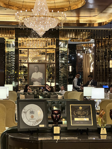 Situated within a luxurious five-star hotel, the restaurant boasts opulent décor—grand golden chandeliers, lavish marble accents—setting the stage for an enchanting dining affair.
