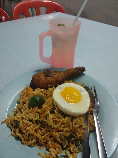 Great place to hang out for supper with a bunch of friends. Indomee double with fried chicken(ask to reheat the chicken if you don't want your chicken to be cold) 👍👍 They serve kaima(idk how to spell it sry) which is basically minced burger patty with egg and sauces at the burger stall. A nice sharing treat with friends to pair with your meal. Usually drinks of the night will be some juices like banana/honeydew/orange. You can get it at only RM3 for a jumbo sized drink. Boss there is friendly and staff are okay. The place tends to get crowded later into the night so there'll be some waiting time for your food. (Well you have your friends to chat with right😂) Cleanliness is a bit of an issue tbh. Overall a nice place to...