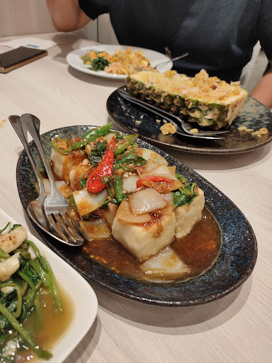 Read moreNice food. Went twice. Clean and bright interior. Dishes that I like: Fried Seabass is super crispy, light on the palate and flavourful. Can be a lil salty. Well done👍 portion 4-5 pax Creamy Tom yum hits all the right notes without being too spicy - savoury, lemak, and a hint of zest. Portion 3-4 pax Stir fry crab with yellow curry is great to enjoy with rice. Creamy, packed with umami and indulgent. Portion 4 pax Deep fried Tofu with basil sauce - Tofu has a light and airy crispy exterior encasing the soft and moist tofu inside. Iirc the sauce is very spicy 🥵. Maybe order the plain one with dipping sauce if you can't eat very spicy food. Portion 4 -5 pax. Plain omelette - basic but nice. 4-5 pax Stir fry kangkung - from the looks of the gravy I can say it has the perfect emulsification of aromatics and sauces. Nicely done. Portion 2-3 pax