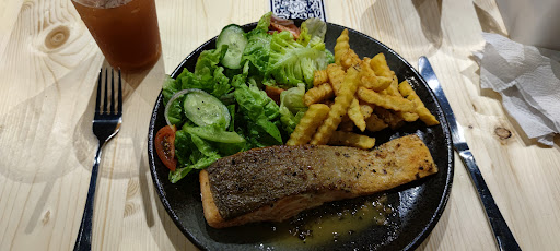 Upon arrival at modern food lab, we were warmly welcomed by the owners. The Interior is very nice and as intended by the owners, very modern. Sadly I think they focused more on the interior then having well seasoned tasty food. We had the chicken chop and the grilled salmon, on the menu it said grilled salmon with mashed potatoes but we got it with fries instead. Not a big issue, if only it was self made fries. One bit into it you could tell that it was bought fries. We didn't even get any type of sauce for it, had to ask the very unmotivated staff worker for chili sauce. The pepper sauce for the chicken chop was more like a sweet and sour sauce, not enough pepper! Also there was barely any sauce in the first place on both chicken chop and salmon. One of our salads was salty, while the other was tasteless. The price for both meals is very expensive and sadly the food doesn't meet the standard it should have for the price. Also they only accept cash, wish that was written somewhere or informed. luckily we had cash with us.