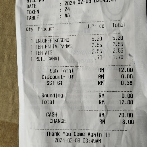 However, I ordered a Roti Canai and a Limau Ais. My Roti Canai was quite small - so I asked for another roti and just a bit of daal. So, thry counted it as two. No complain about that, but why do they serve such small portion of Roti Canai? The roti is delicious, but I wasn't a big fan of their sambar. But the sambal was maybe very palatable for most Malaysians. But as a non-Malaysian, I prefer my sambal on the sweeter side which theirs wasn't. Their Limau Ais was very good, as expected. My sister ordered a Dosai and a Teh Tarik Ais. Her Dosai was really delicious. The potatoes inside the dosai bread was incredible, exquisite and definitely worth the wait and hype. Recommended for their Dosai and Limau Ais. But do visit before 4pm to get a wide...
