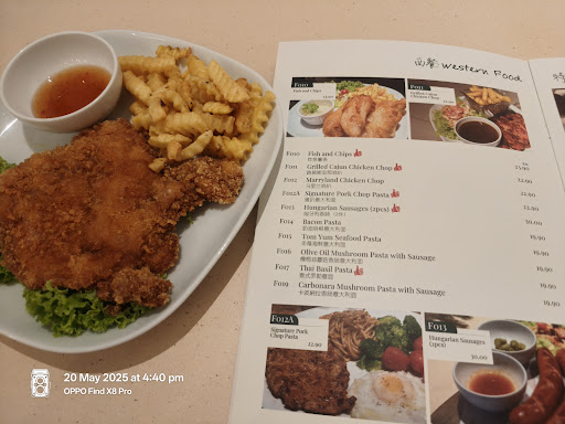 Read moreWanted to visit this cafe for quite sometime but always forgot about it. So today decided to pay a visit. I'm not sure if it was unlucky for me to come at the wrong time. 1stly, there was a group of customer having some alcohol drinks & they were making hell of a noise. Then only realized they were celebrating someone's birthday. I just couldn't enjoy my meal in a peaceful environment. 2ndly, I felt cheated by 1 of the food item which is Maryland chicken chop. I'm not sure if I'm wrong or being ignorant. I thought I've ordered the wrong food but the waitress did confirm that is the right order. For the past so many years. This is the 1st time I came across a Maryland chicken chop that serve like a normal chicken chop without extra sausage, fried egg, corn, salads, bacon... It's a normal chicken chop indeed. And the passion fruit juice is so damn sour. I'm sorry that I've to give my honest review here. Others may have a good experience here but not me. I won't recommend it to my friends. But I do acknowledge that the environment of the cafe is...