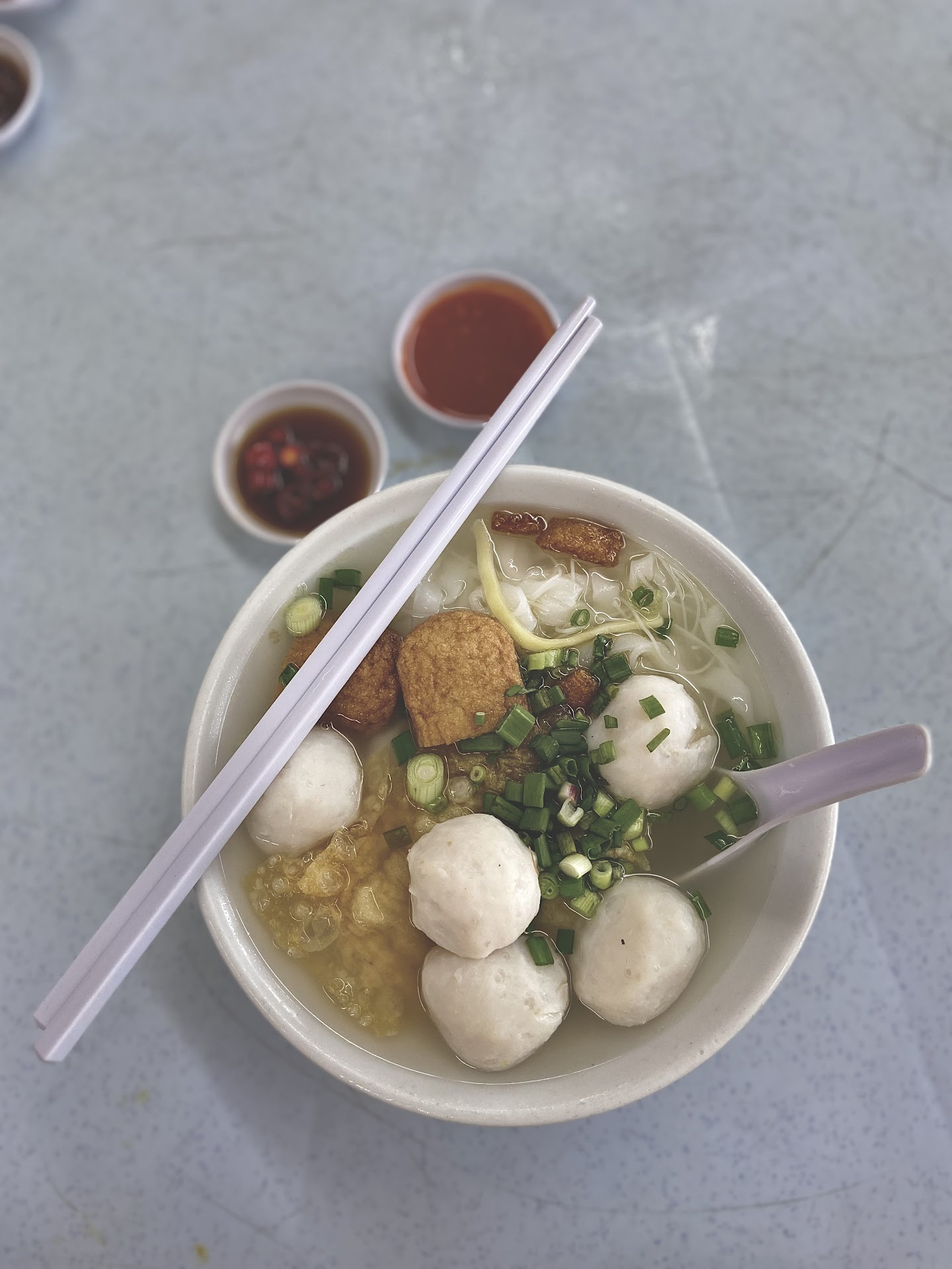 ย ย ย Read moreFinally got the opportunity to try this much talked about fish ball noodle. They open early in the morning at 6:30am according to their Facebook page. But once I came & by 11:30am they were sold out so try to come early. Order the soup based noodle and it came with a generous amount of fishballs, a piece fuchuk and a piece fish cake; added with chopped spring onions and crispy pork lard (Chu Yau Char/ ็ชๆฒนๆธฃ) To my surprise the fishballs were abit soft (borderline mushy) unlike the usual springy/ bouncy fishballs we are used to eating. Was a tad disappointed with the texture. To me the standout in the dish was the fish cake. It tasted yummy and springy. The soup base was fresh with not too overly salty & it was good. Each bowl of noodle comes with chopped red cili padi and a homemade chili dipping sauce according to the staff. The latter was my favourite. You have a choice to add on minced pork for an additional ringgit and you can choose your noodles to come in a small and large bowl. Worth a try. PS: I did not feel thirsty as the day went by...